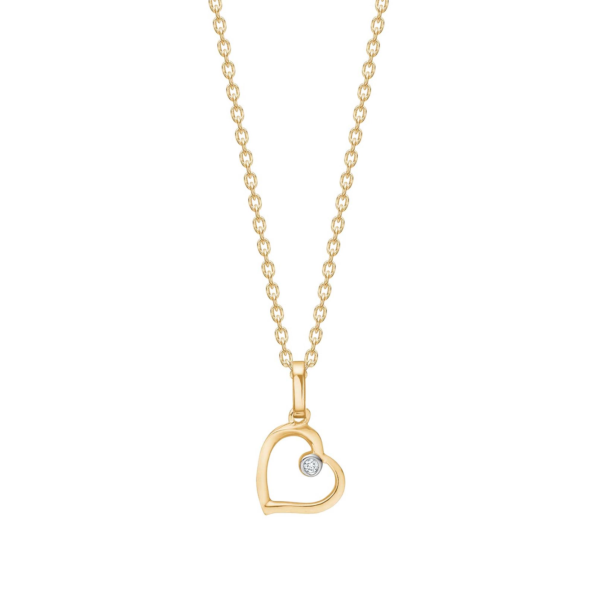 14kt. guldhjerte m/dia. 0,008ct W/SI inkl. forg. kæde, från Siersbøl