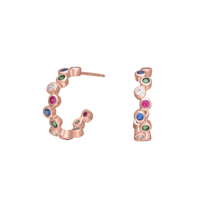 Beautiful open and abstract creoles with stunning colourful zirconia, 19 mm in diameter