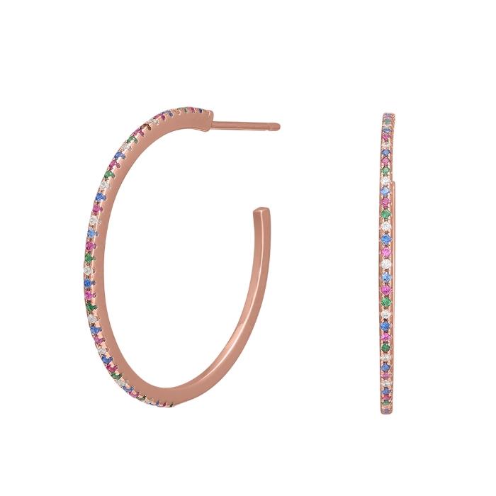 Beautiful open creoles with colorful stones, 18 mm in diameter
