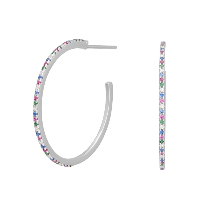 Beautiful open creoles with colorful stones, 18 mm in diameter