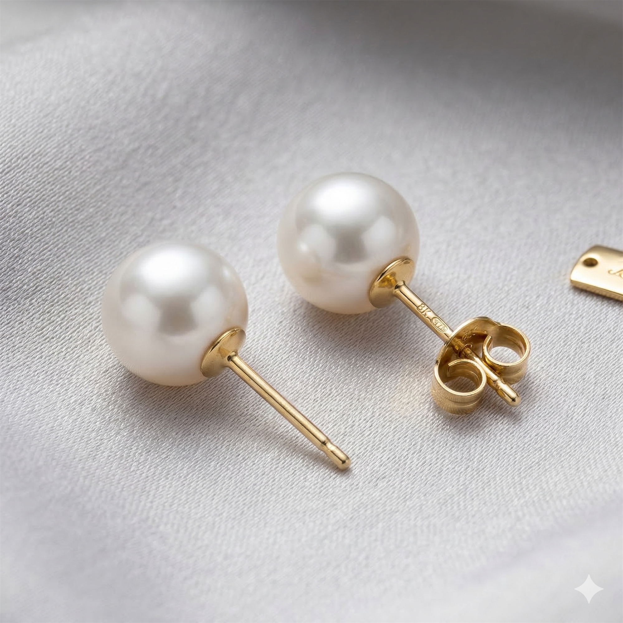 Exclusive freshwater pearl stud earrings with 8 carat pin