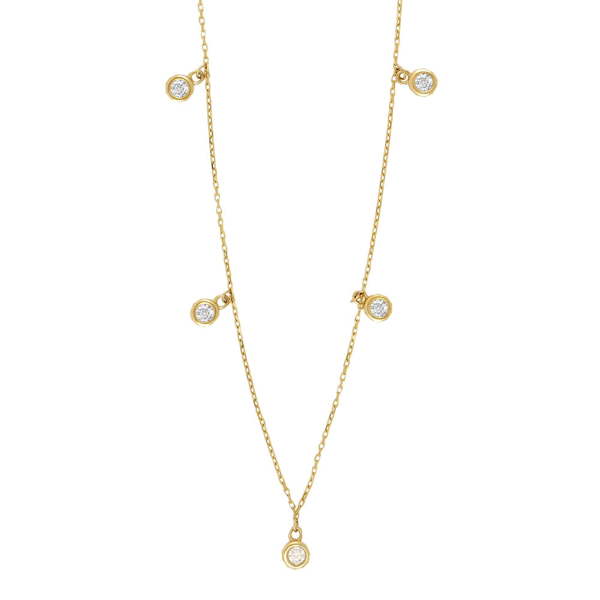 8kt. guldhalskæde m/5 cz i rørfatning, från Siersbøl