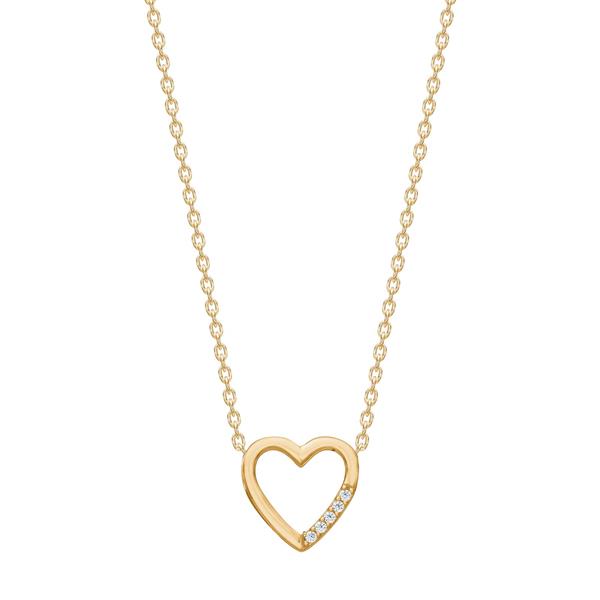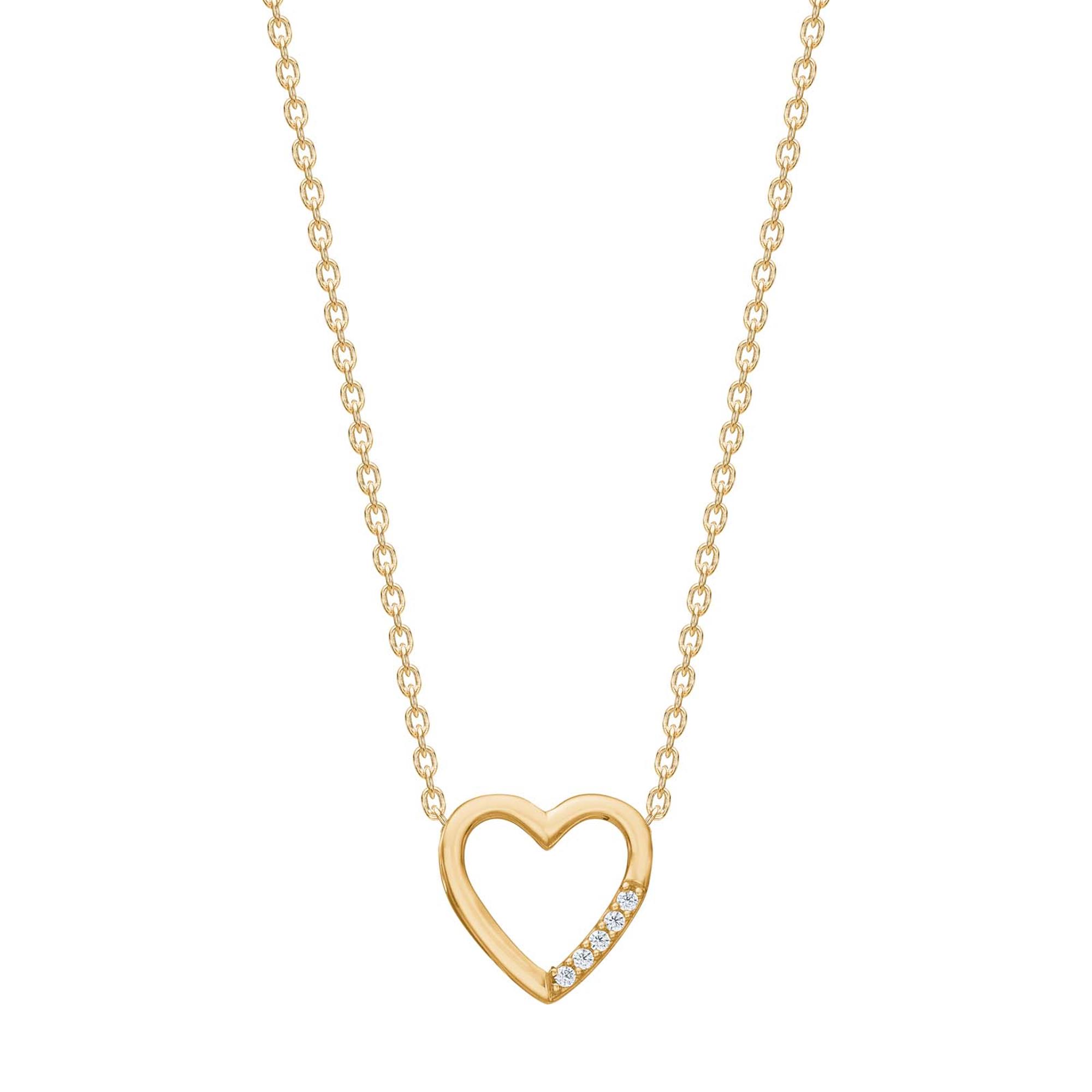8kt. Guldvedhæng hjerte m.cz inkl. forg. kæde, från Siersbøl