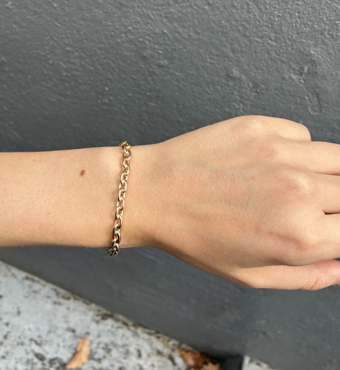 Classic round anchor chain in solid 14 carat gold. The bracelet is Danish produced at BNH after good old craft traditions. The bracelet is available in several widths and lengths and will be delivered either with spring clasp, lobster clasp or solid box clasp, depending on the width.