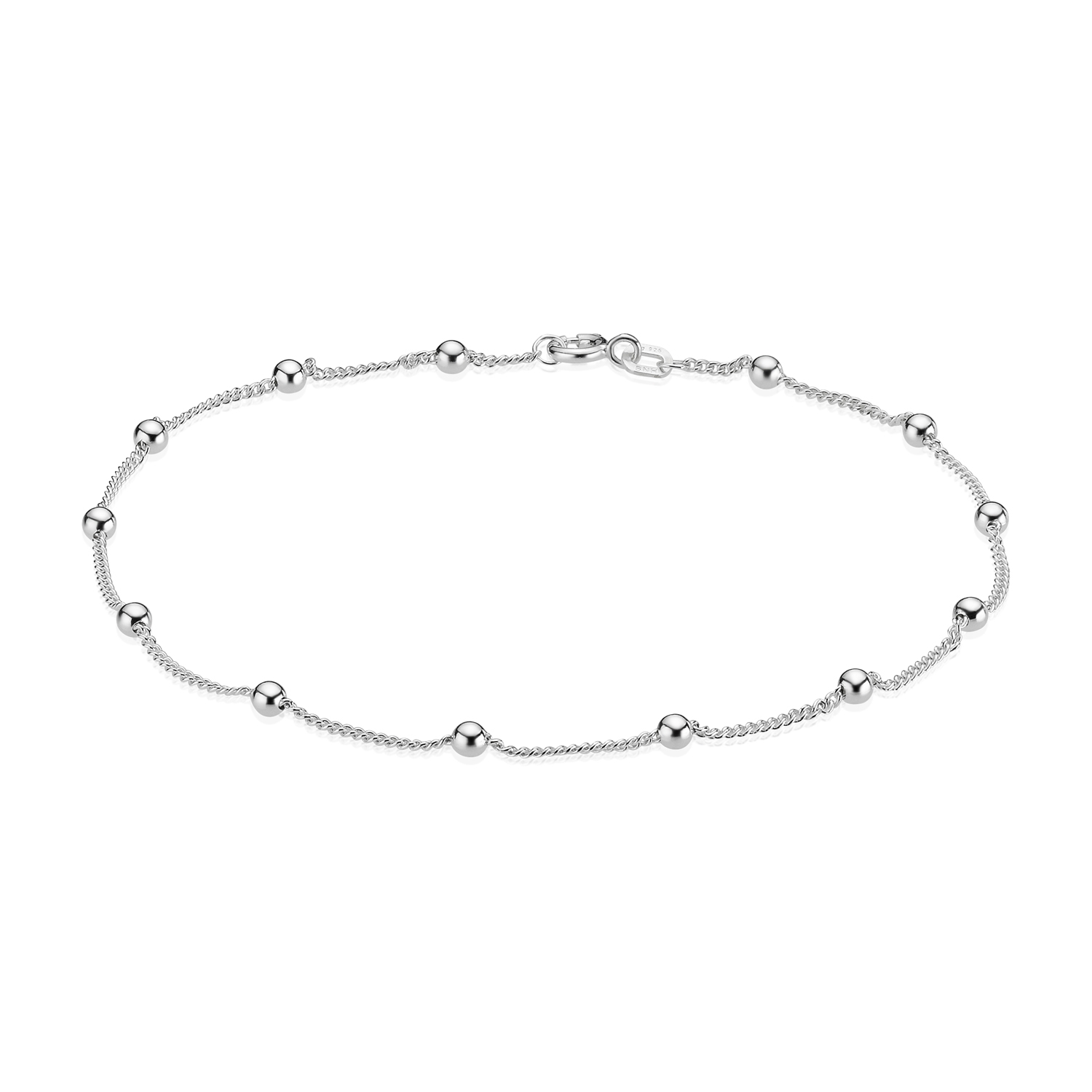 Ankel kæde i rund panser med kugler i sterling sølv, 25-27 cm