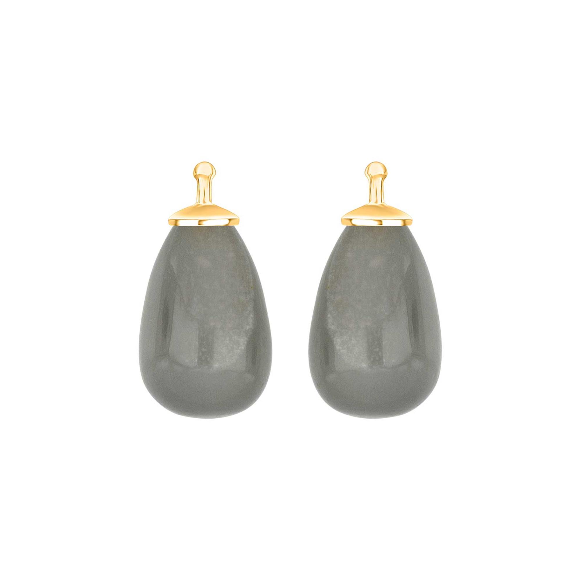 Grå månesten dråbe m/ 8kt. guld - par, från Heinzendorff