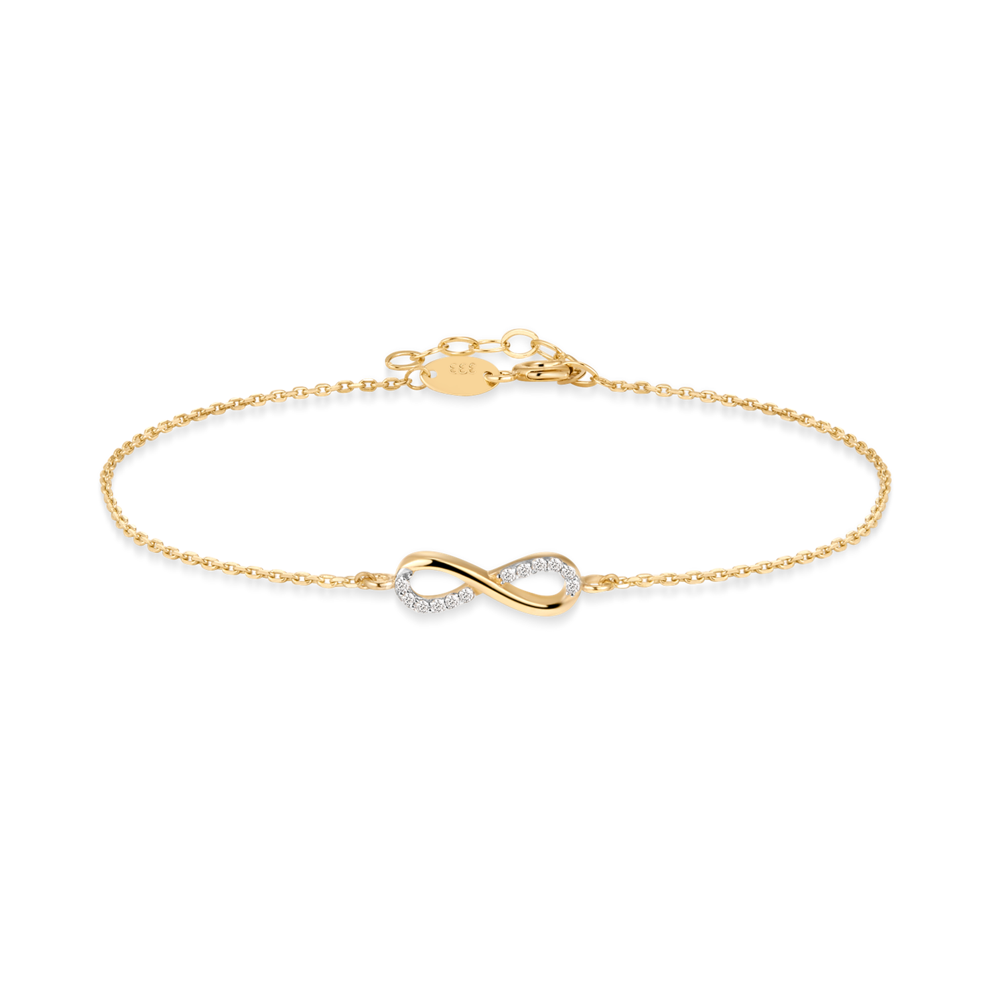 8 kt. guld armbånd evighedstegn med syntetiske cubic zirconia. "Infinity"