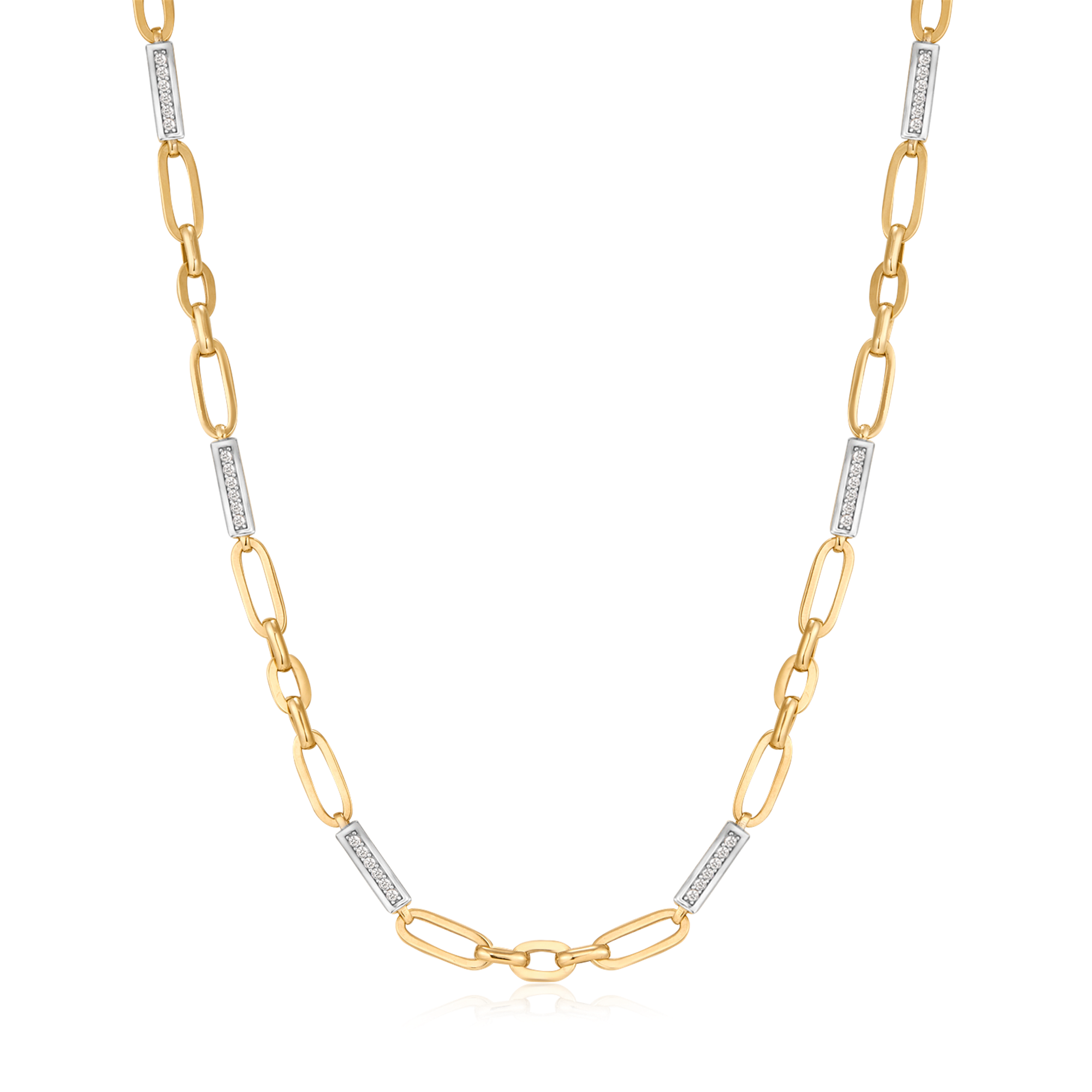 8 kt. guld collier oval led med aflang firkant rør med syntetiske cubic zirconia.