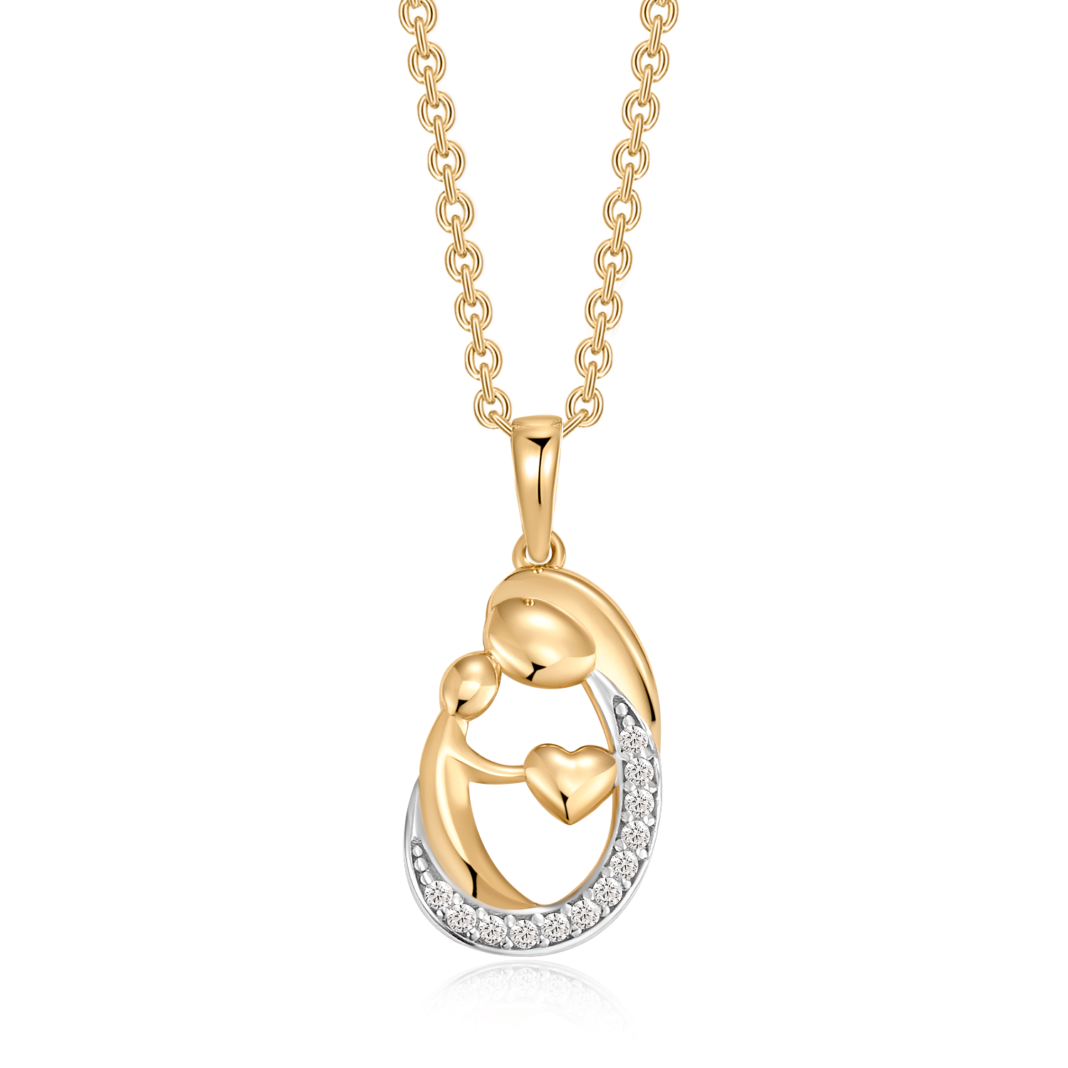 8 kt. guld vedhæng oval med mor og barn med hjerte og syntetiske cubic zirconia. "Mor og barn"