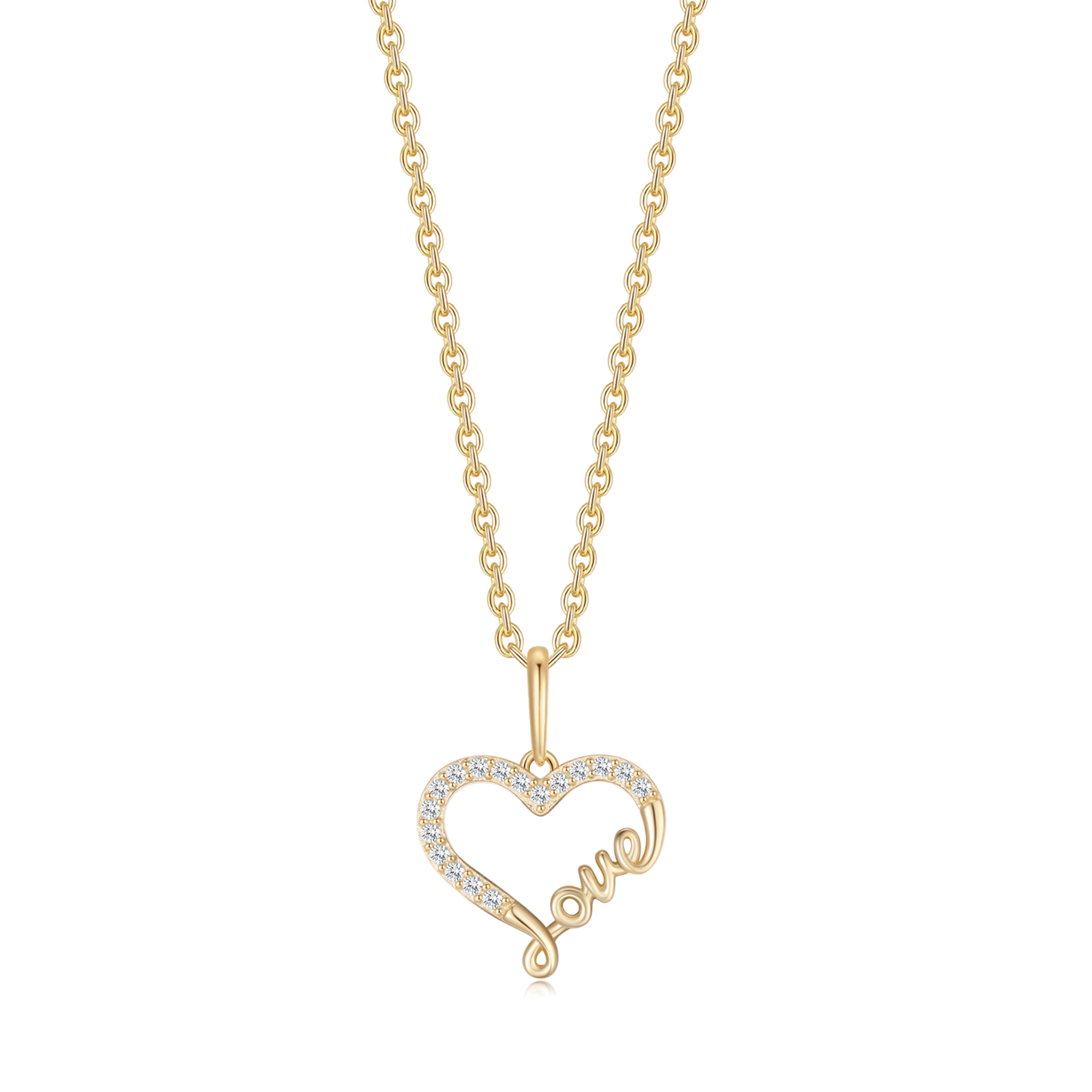 8 kt. guld vedhæng hjerte med syntetisk cubic zirconia og "Love"