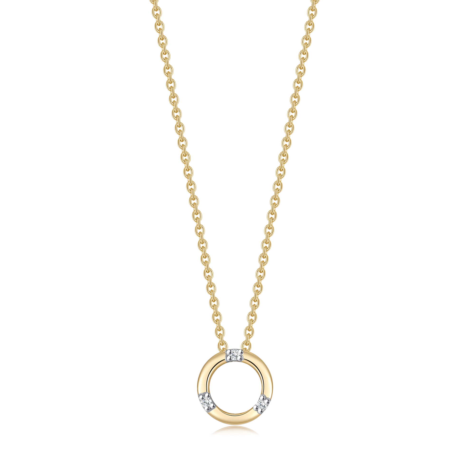 14 kt. guld vedhæng cirkel med 3 syntetiske cubic zirconia.
