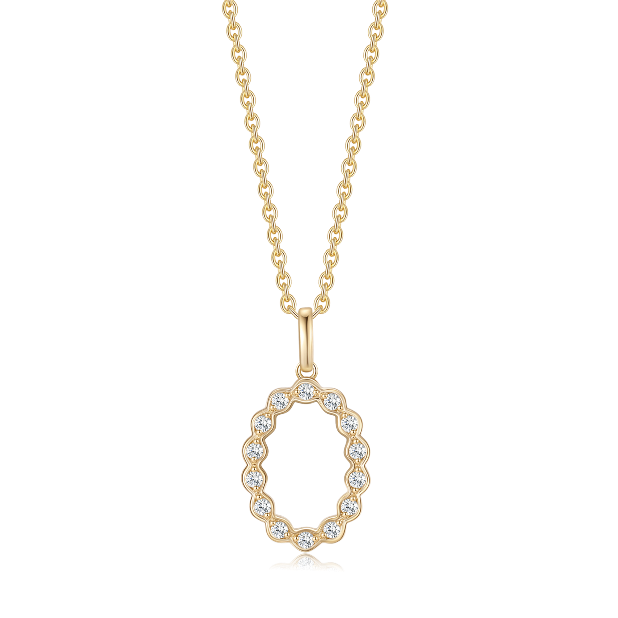 14 kt. guld vedhæng oval med brillanter i små cirkel hele vej rundt.