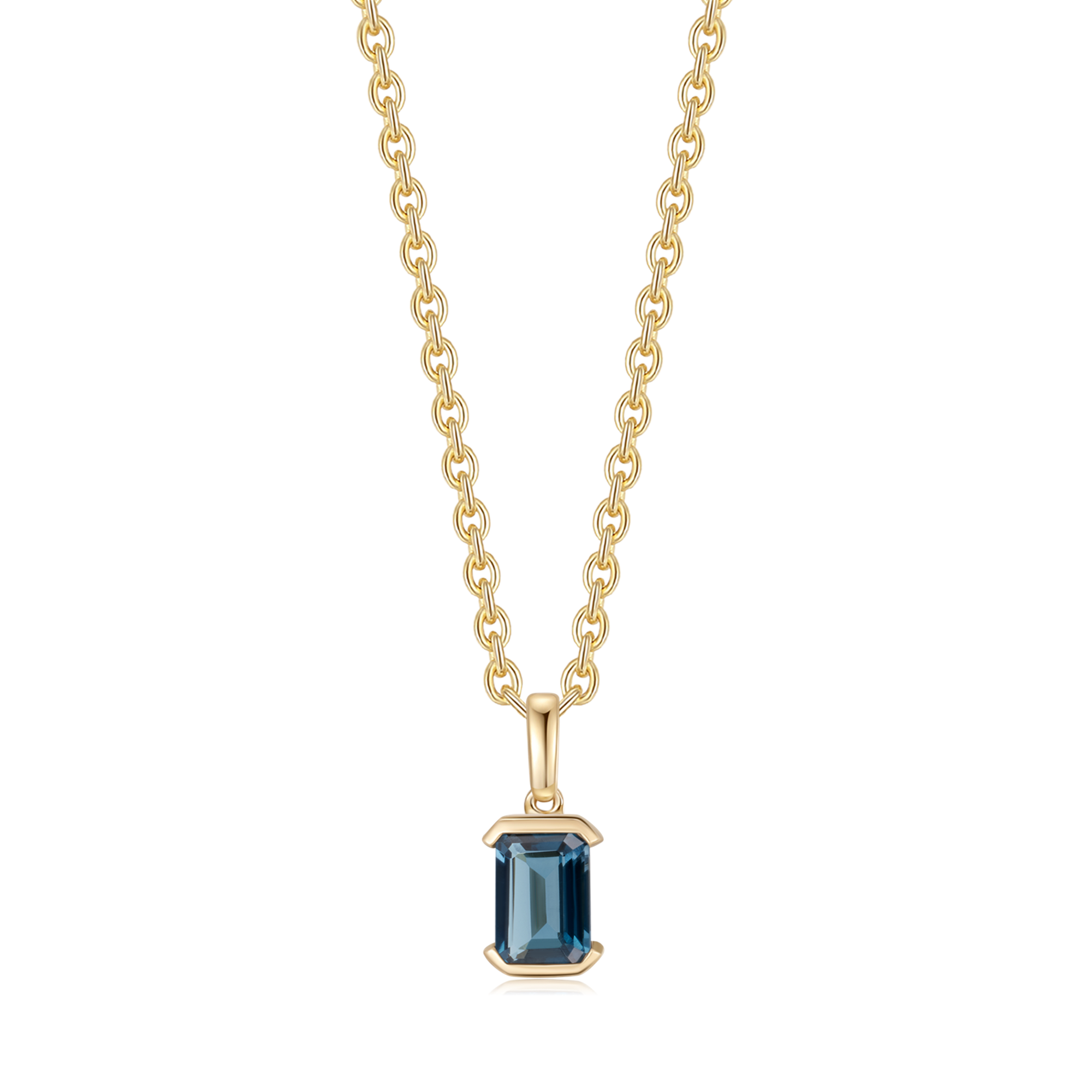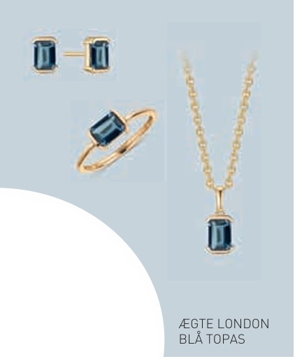 14 kt. guld vedhæng aflang firkant med london blå topas.