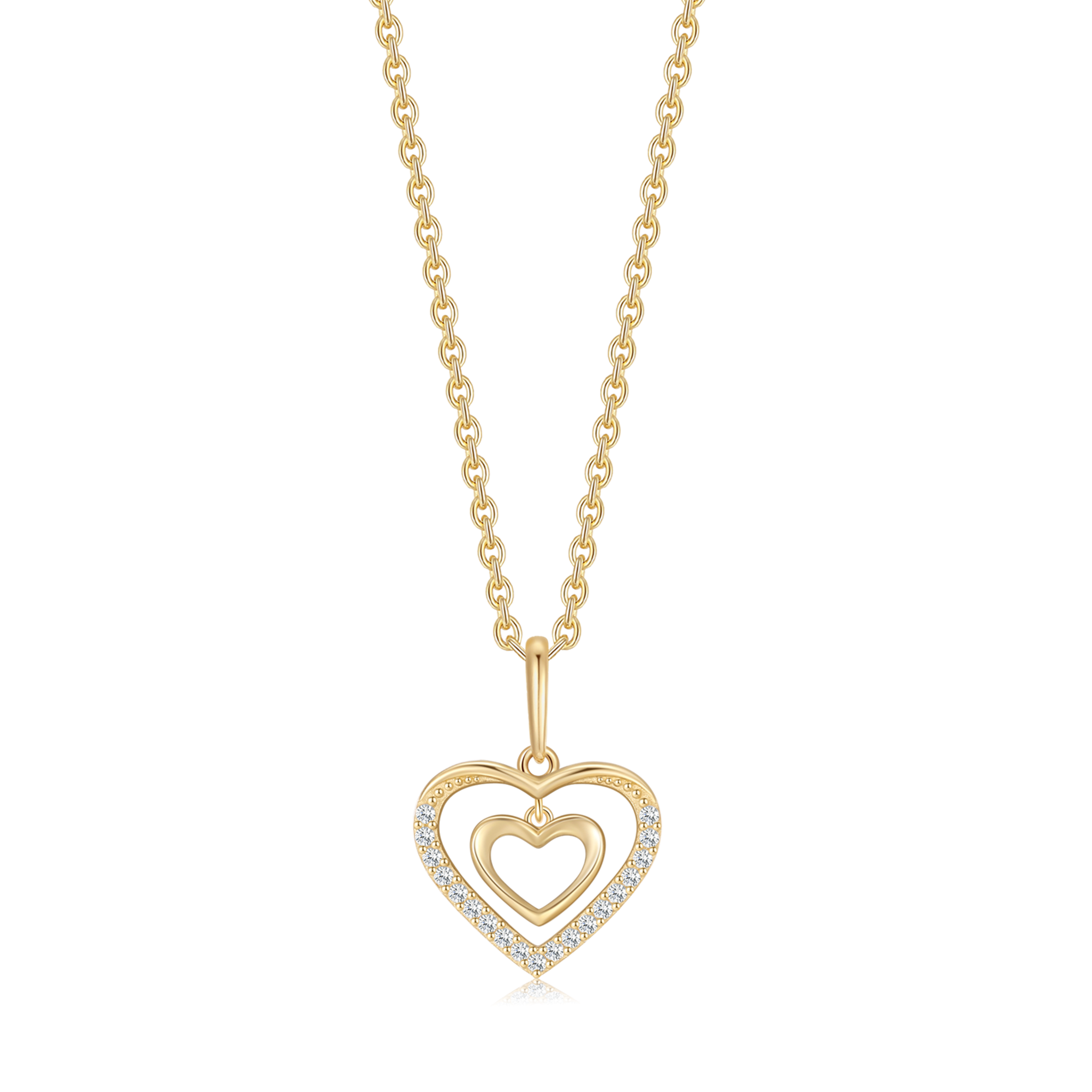 14 kt. guld vedhæng dobbelt hjerter med syntetiske cubic zirconia.