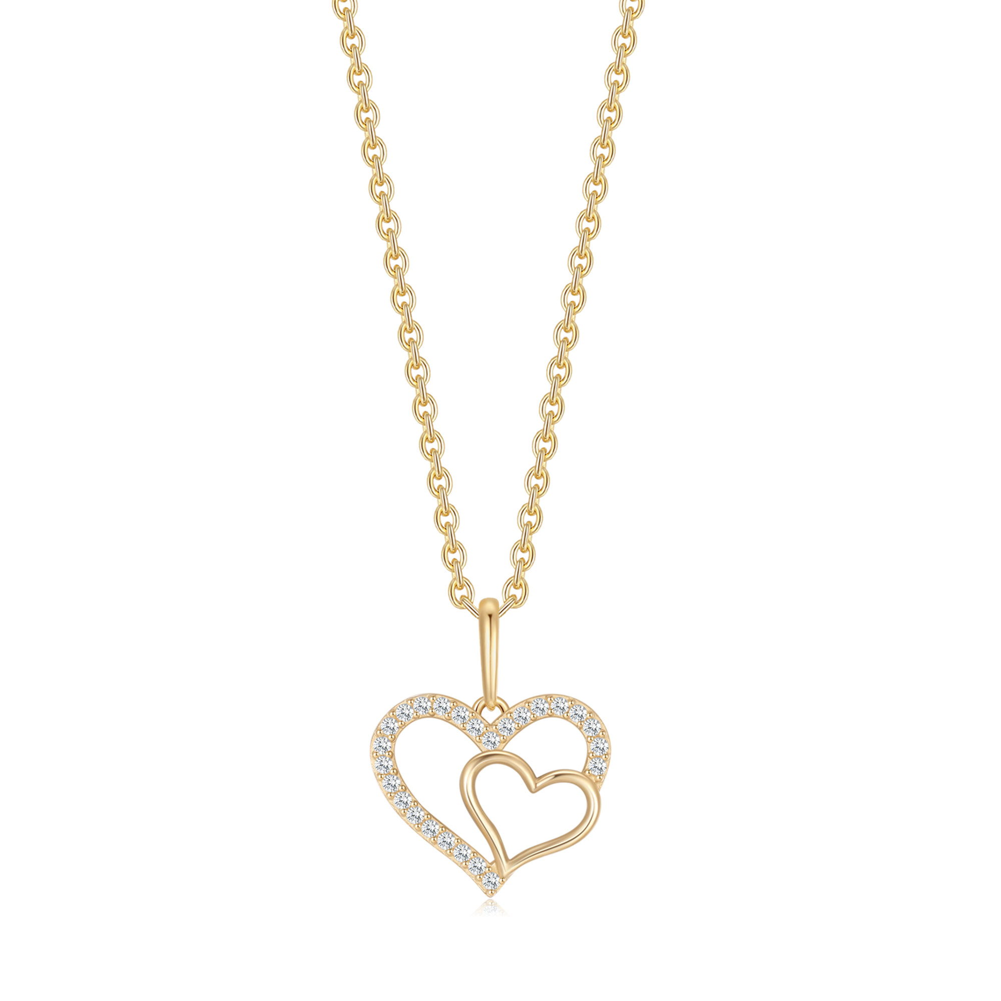 14 kt. guld vedhæng dobbelt hjerter med syntetiske cubic zirconia i kanten.