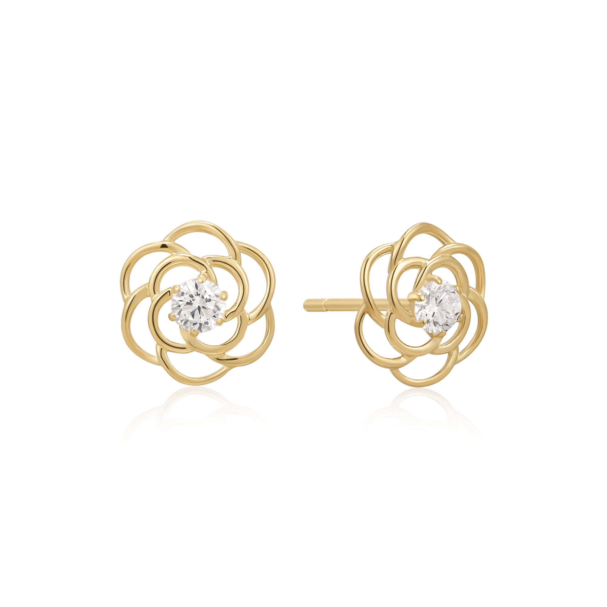 8 kt. guld ørestikker blomst med en syntetisk cubic zirconia.