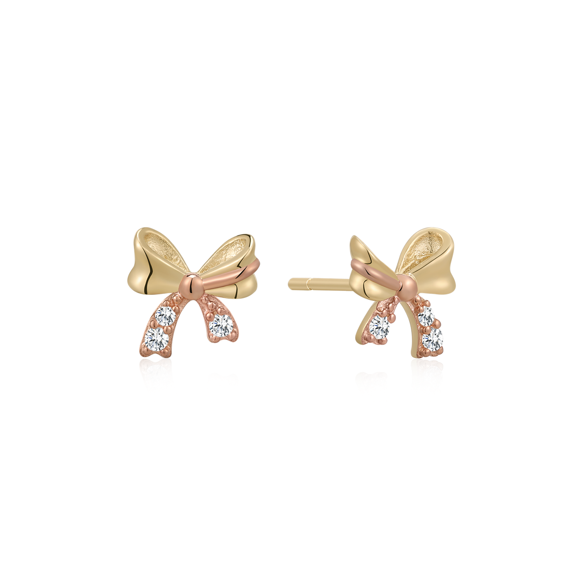 8 kt. guld ørestikker sløjfe med syntetiske cubic zirconia.