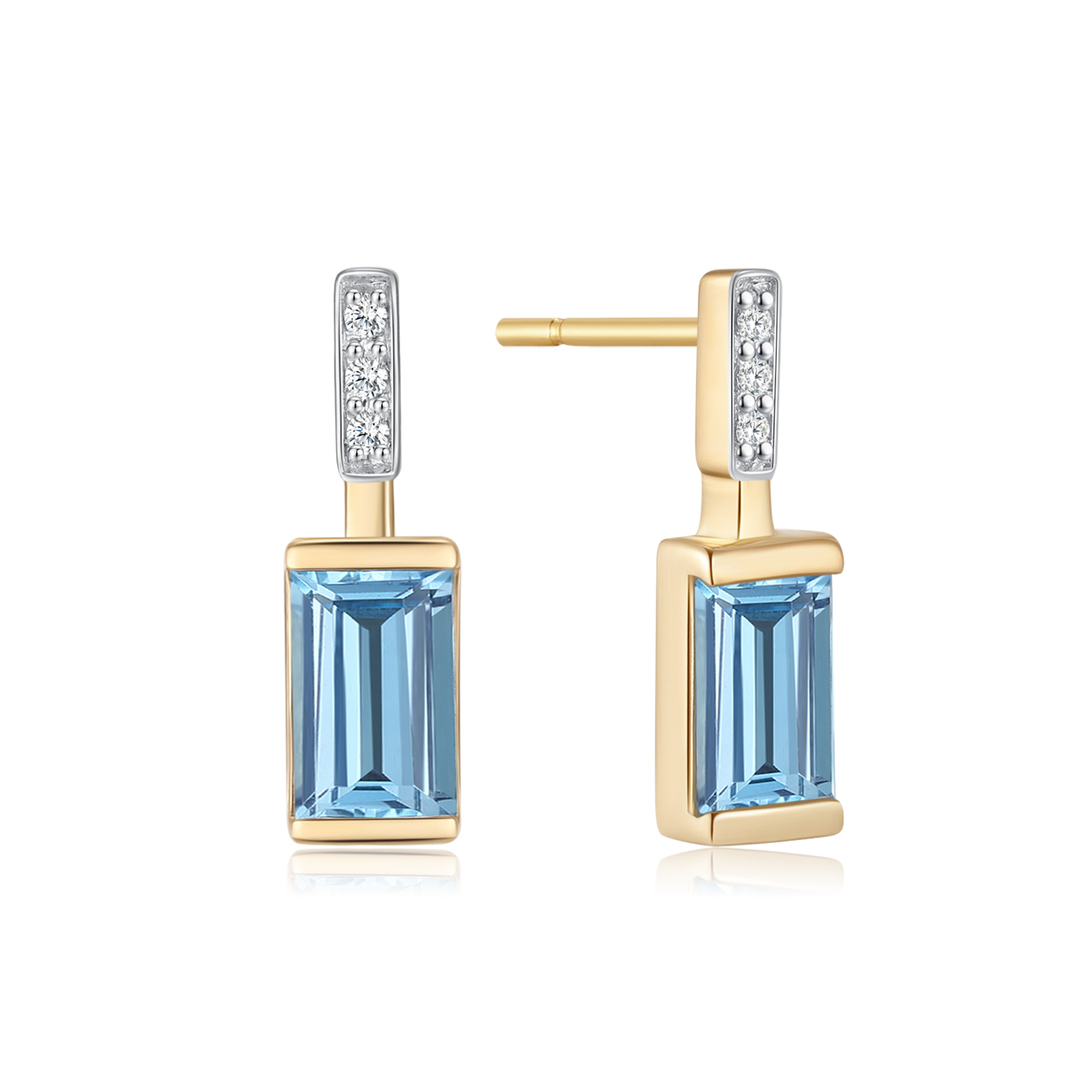 14 kt. guld ørestikke aflang swiss blå topas med syntetiske cubic zirconia.