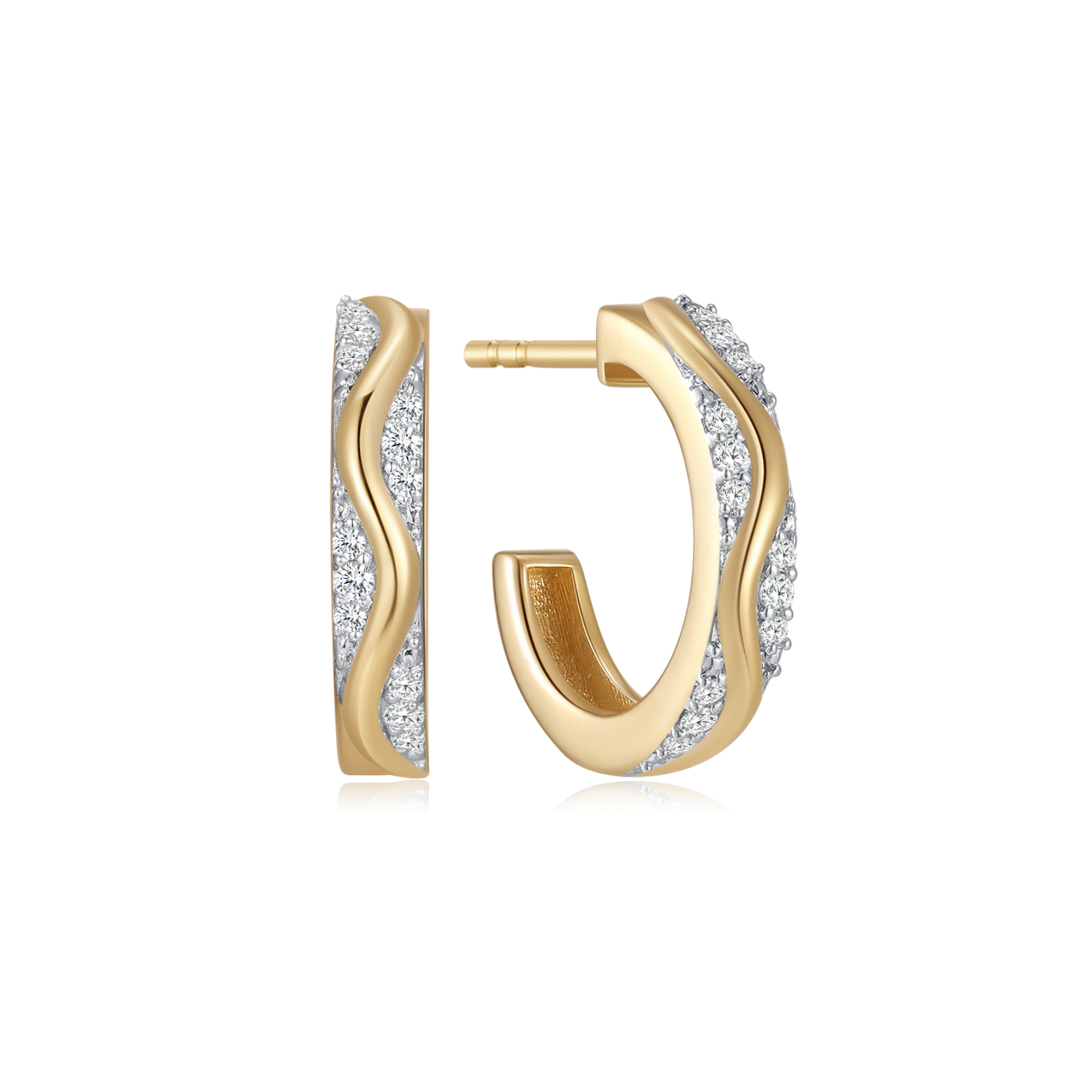 14 kt. guld ørestikker halv creol med mønster og brillanter.