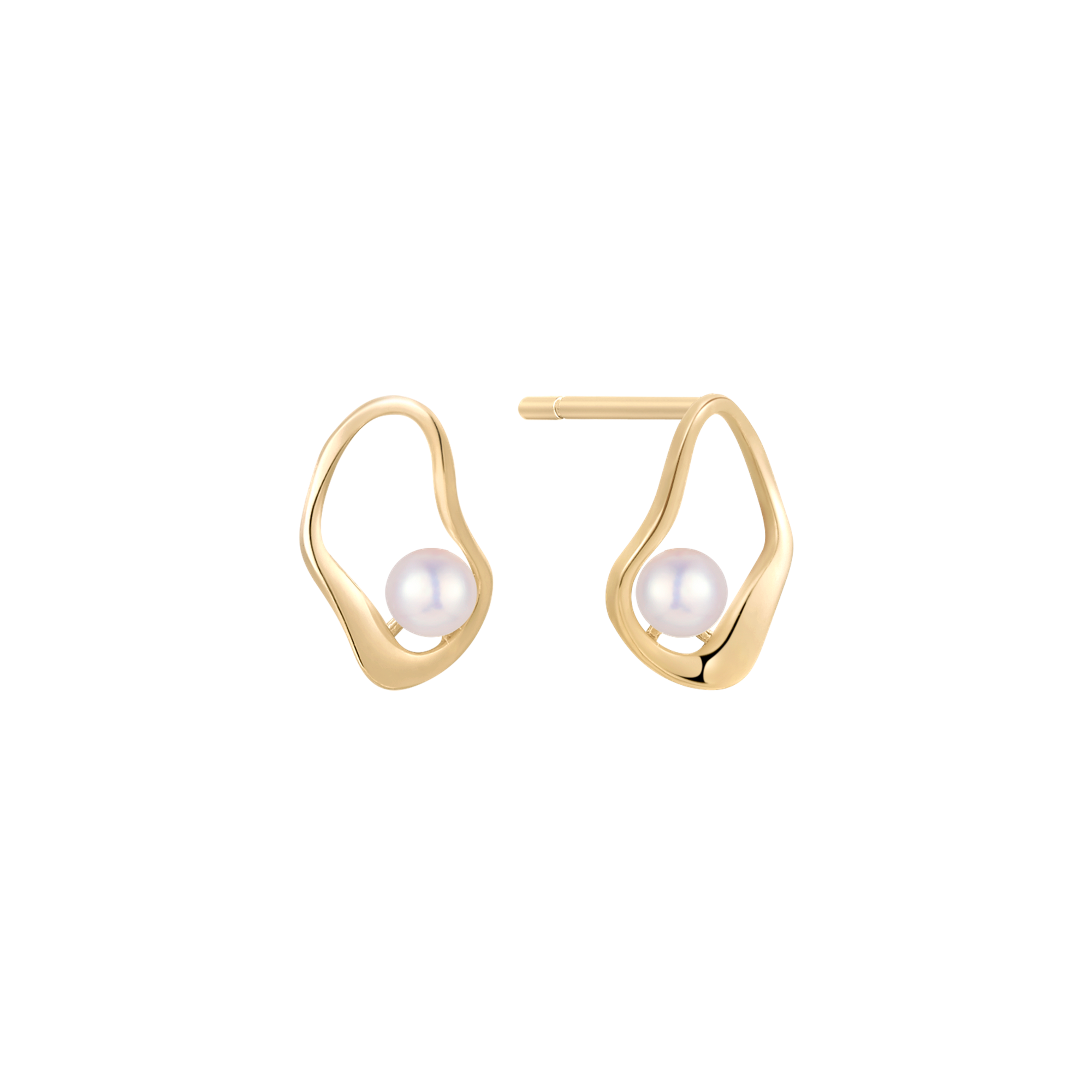 14 kt. guld ørestikker skæv oval med ferskvandsperle.