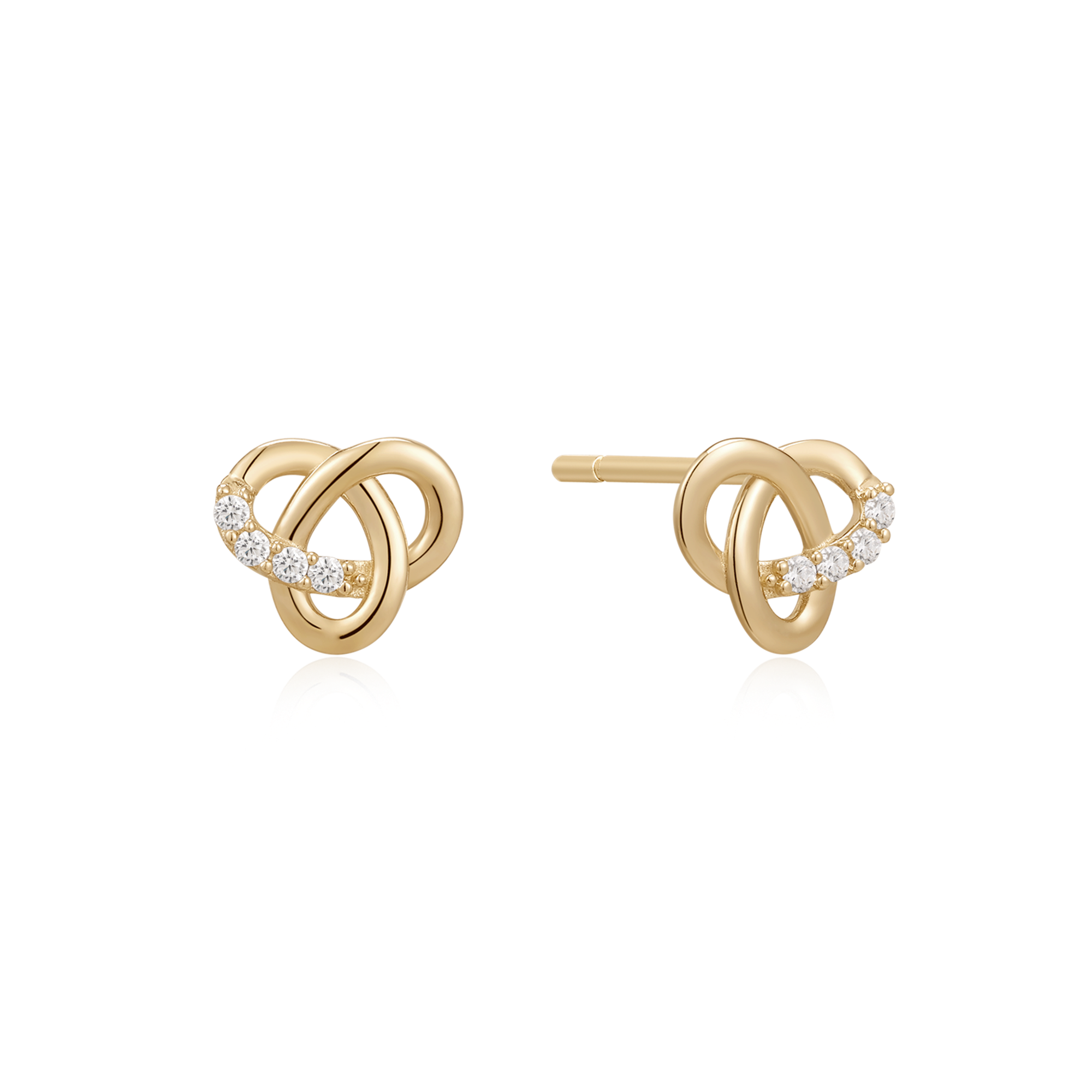 14 kt. guld ørestikker flettet cirkel med syntetisk cubic zirconia.