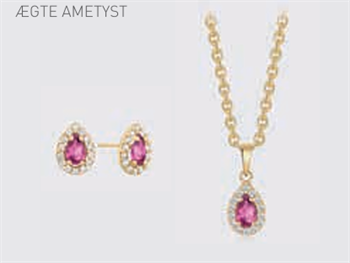 8 kt. guld ørestikker oval ametyst med syntetiske cubic zirconia.