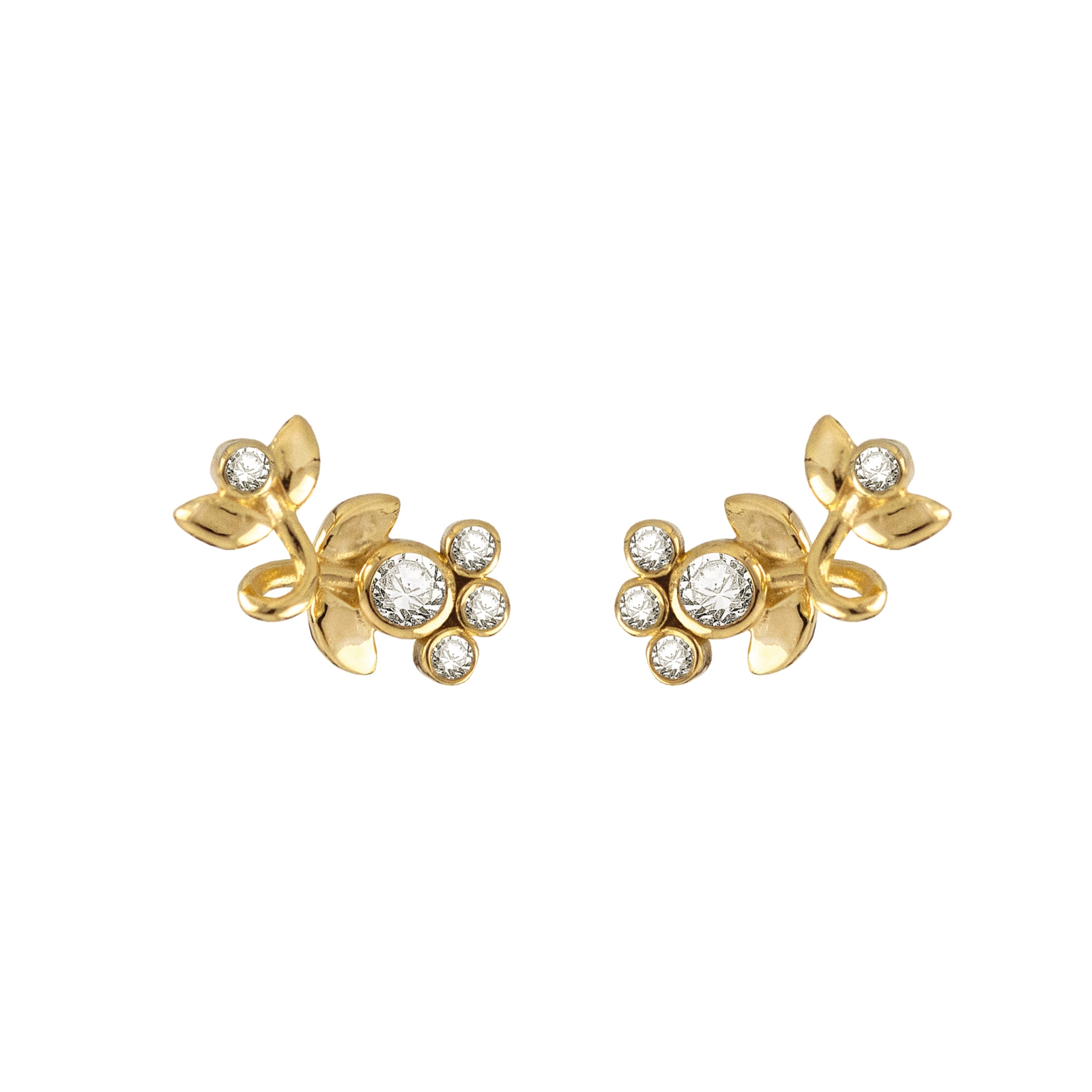 Dessa förgyllda örhängen från Rabinovich förenar sofistikerad design med tidlös skönhet. Den blomliknande formen med en central 2,5 mm zirkonia, omgiven av fyra mindre 1,3 mm zirkonior, skapar en utmärkt balans mellan elegans och glamour. De bladliknande detaljerna ger en organisk och romantisk touch.