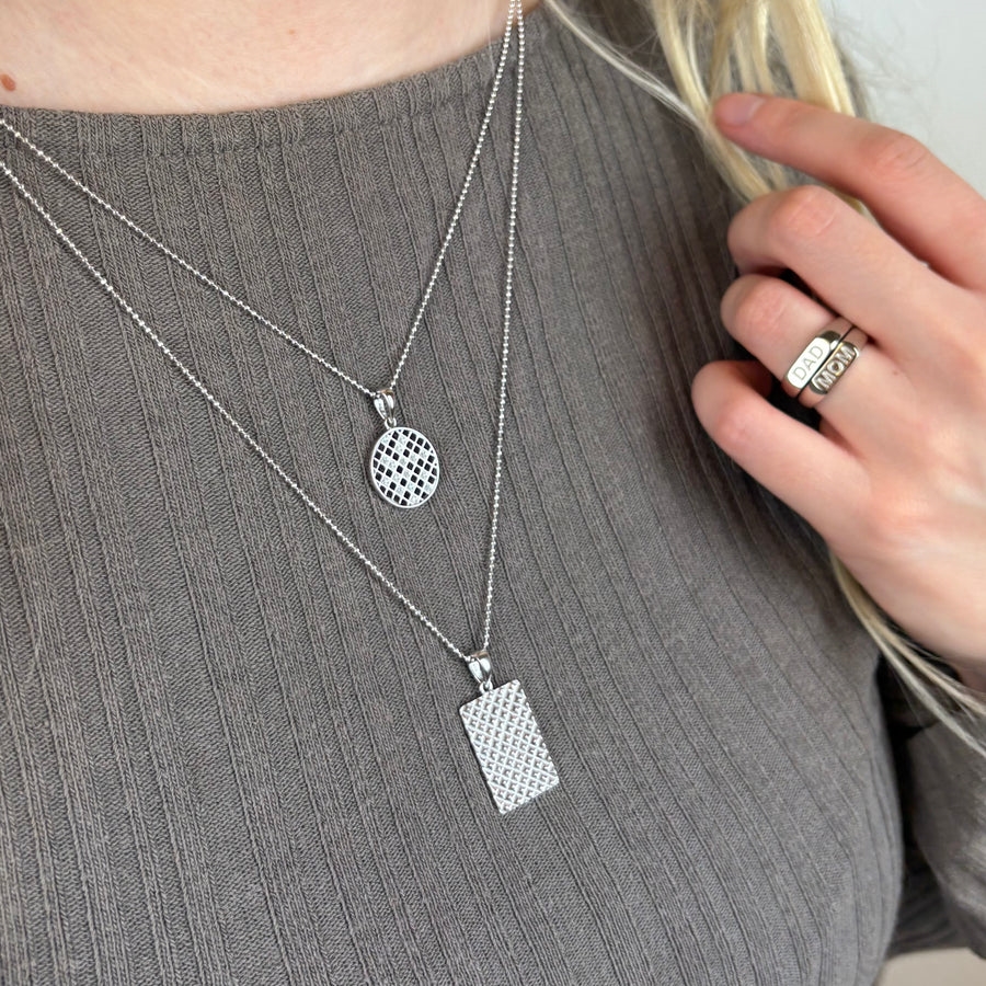 Beautiful silver pendant with mesh pattern and sparkling zirconia