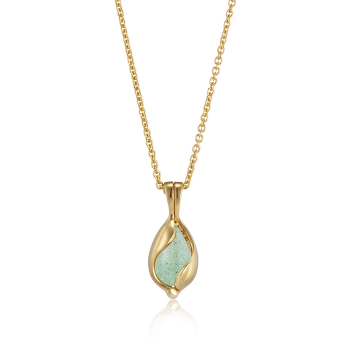 Lille blankt smykkeæg, med grøn aventurin - Blicher Fuglsang