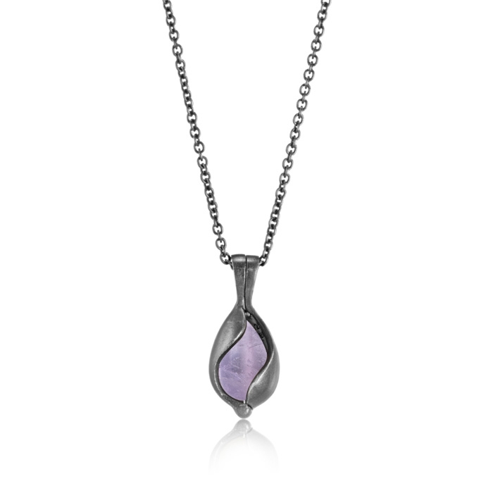 Lille oxideret smykkeæg i sølv, ametyst - Blicher Fuglsang