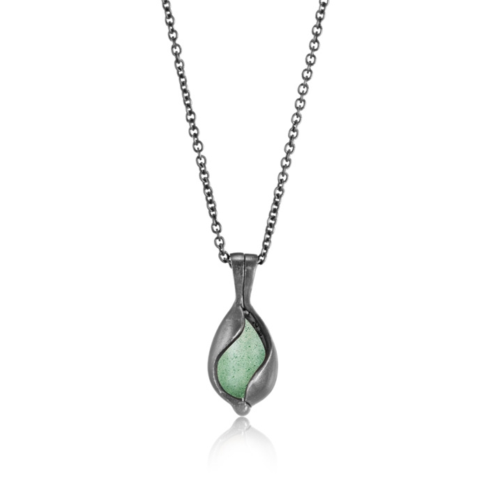 Lille oxideret smykkeæg med grøn aventurin - Blicher Fuglsang