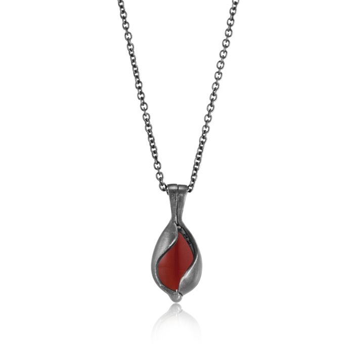 Lille oxideret smykkeæg med rød agat - Blicher Fuglsang