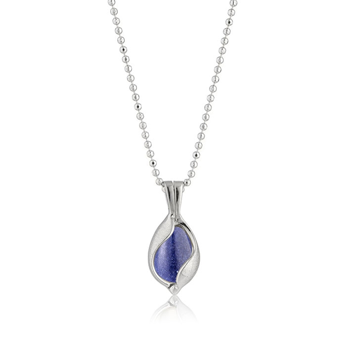 Lille smykke æg i sølv, Blå Aventurin - Blicher Fuglsang, uden kæde