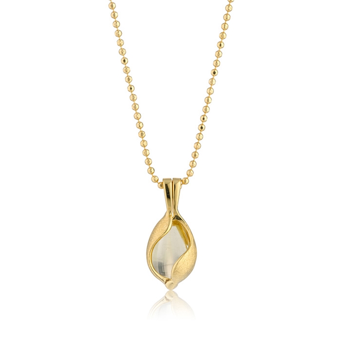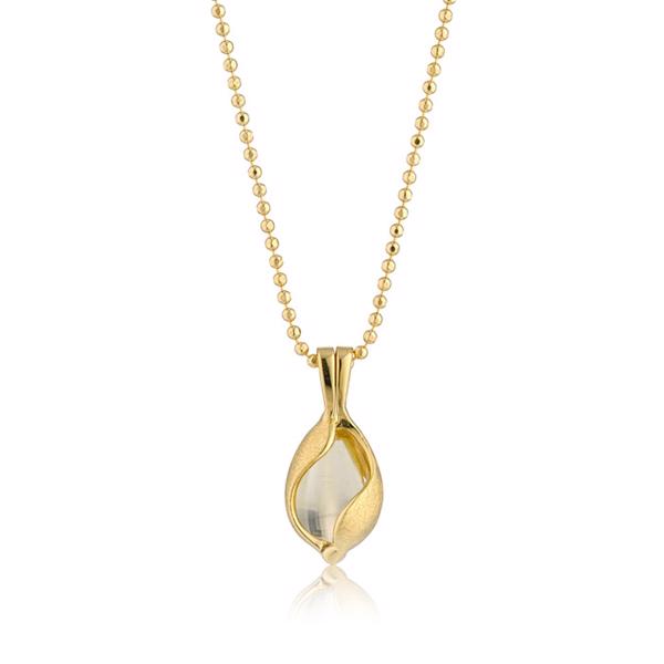 Lille smykke æg i forgyldt sølv, Lemonkvarts - Blicher Fuglsang, med 45 cm kuglekæde