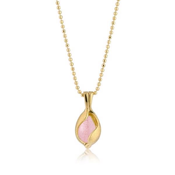 Lille smykke æg i forgyldt sølv, Jordbærkvarts - Blicher Fuglsang, med 45 cm kuglekæde
