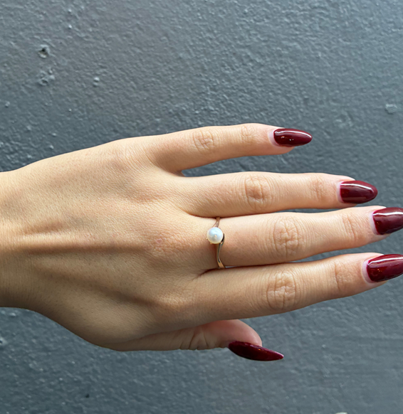 Lund Clock 8 kt. Gold finger ring shiny - 5,5 - 6,0 mm cultured pearl