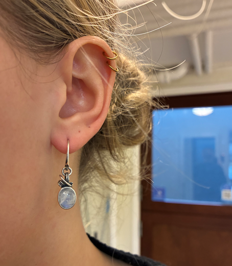 Ørehænger i antik oxyderet sterlingsølv med rainbow månesten