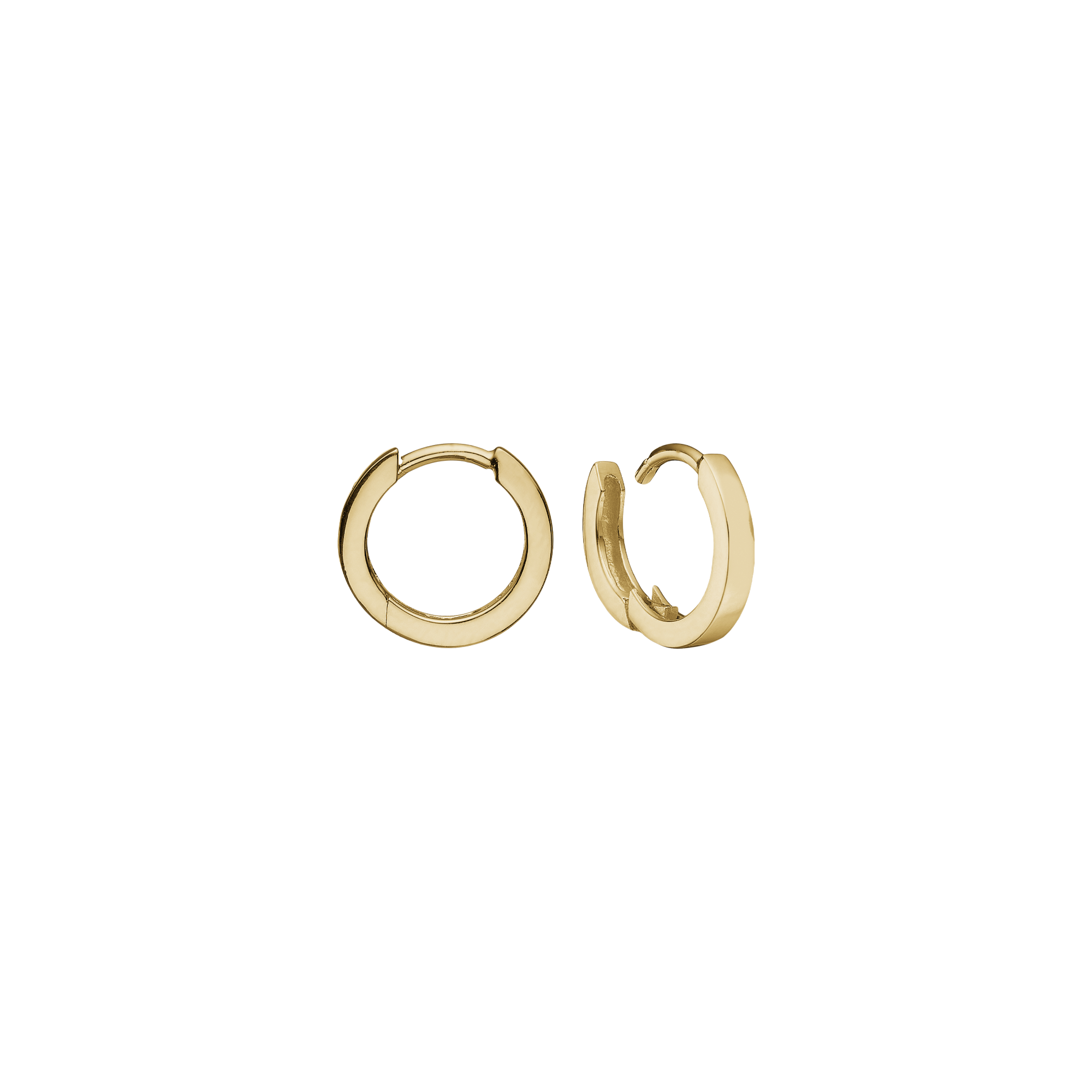En klassisk creol med en slät, glänsande yta som strålar av tidlös elegans. Dessa örhängen är tillverkade i förgyllt silver, vilket ger dem en lyxig och varm guldton som kompletterar de flesta stilar. Diametern på 11,5 mm gör dem perfekta för dig som söker ett subtilt och elegant uttryck – varken för stora eller för små, bara lagom för att rama in ansiktet vackert. Trådens tjocklek på 1,9 mm bidrar till smyckets hållbarhet och kvalitetskänsla, samtidigt som designen förblir lätt och bekväm att bära hela dagen. Den runda formen och den släta ytan ger en ren, minimalistisk estetik som passar lika bra till vardags som till fest. Mekanismen för öppning och stängning är diskret integrerad och enkel att hantera, vilket ger dig en trygg och praktisk lösning.