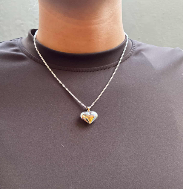 Randers Sølv's Handmade necklace in solid silver with plump heart pendant - 18 x 21 mm