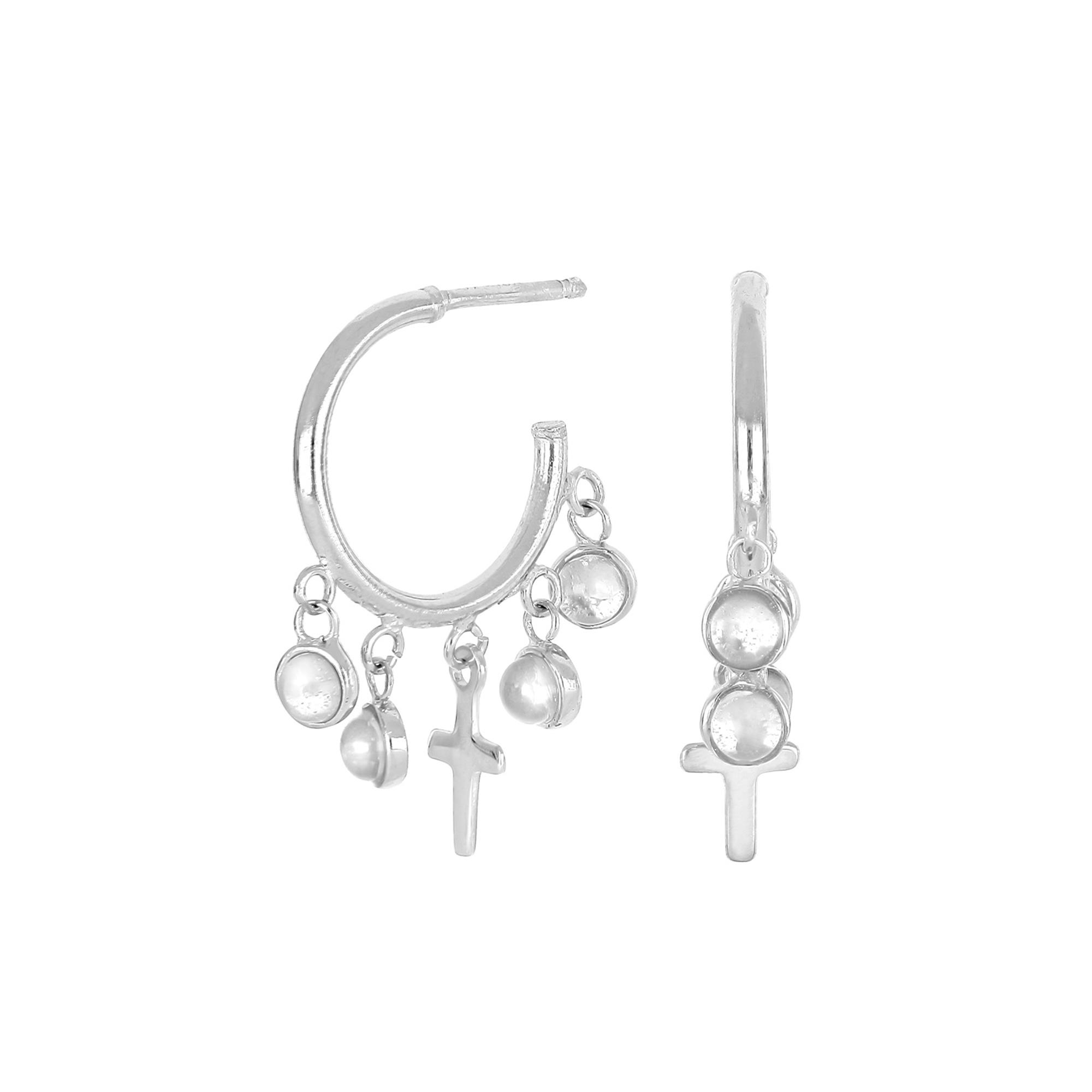 Rhd. sølv creoler CROSS52 14mm quartz, från Nordahl