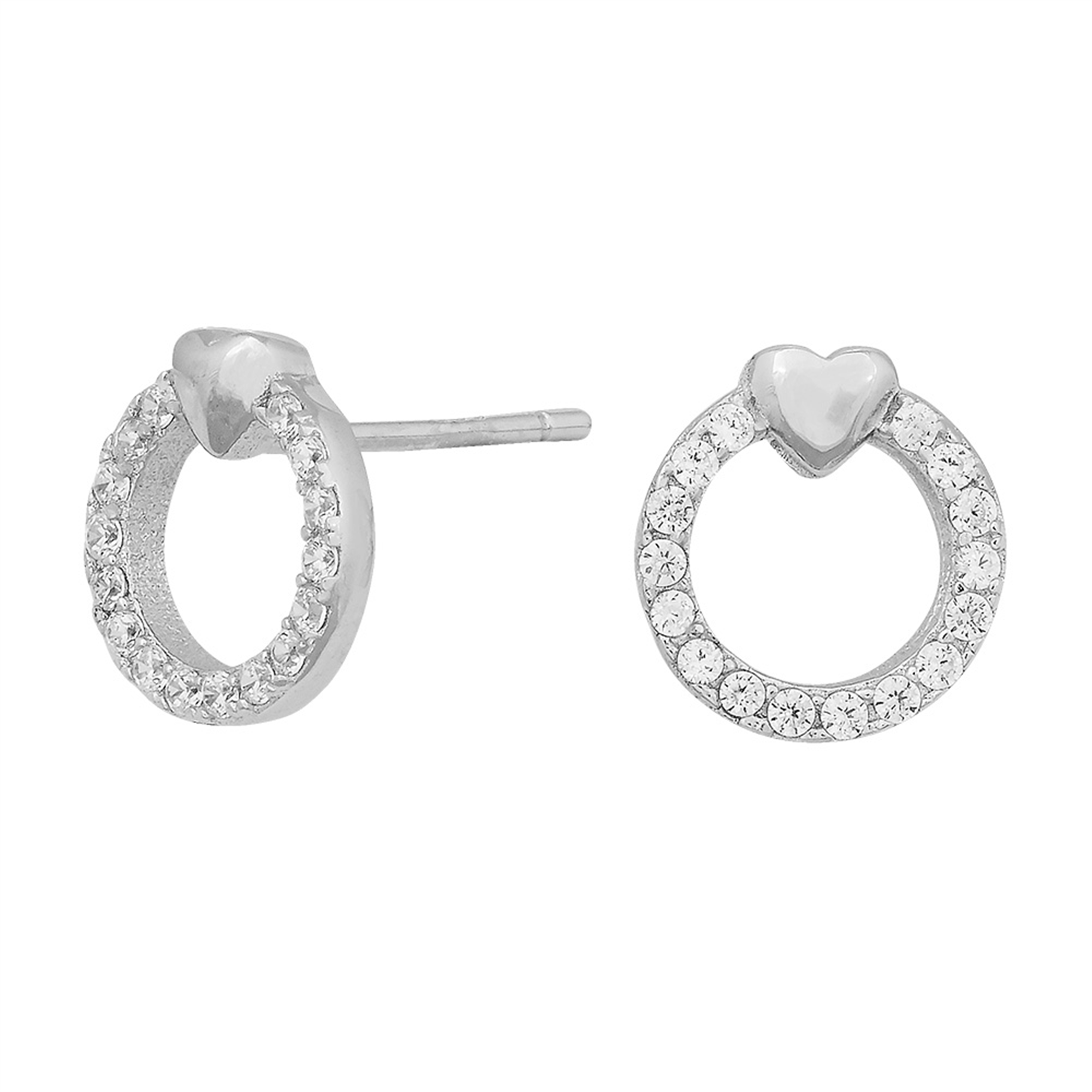 Flatterende, klassik designet smykke, med et lille twist! Med skinnende zirkonia sten, samt det diskrete, lille hjerte, er vores Brina øreringe en smuk version af de populære cirkulære øreringe. De rhodineret sølvøreringe har et ubesværet og sødt udryk