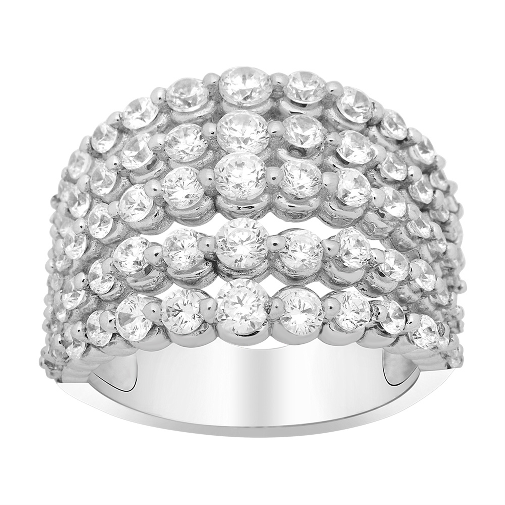 Vores show-stopper Alison ring matcher den stilsikre kvinde, som elsker at skille sig ud fra mængden. Den rhodinerede sølvring har, med de 5 rækker af sammensatte zirkonia sten, i varierende størrelser, et nærmest kunstnerisk design. Brug den ekstravag
