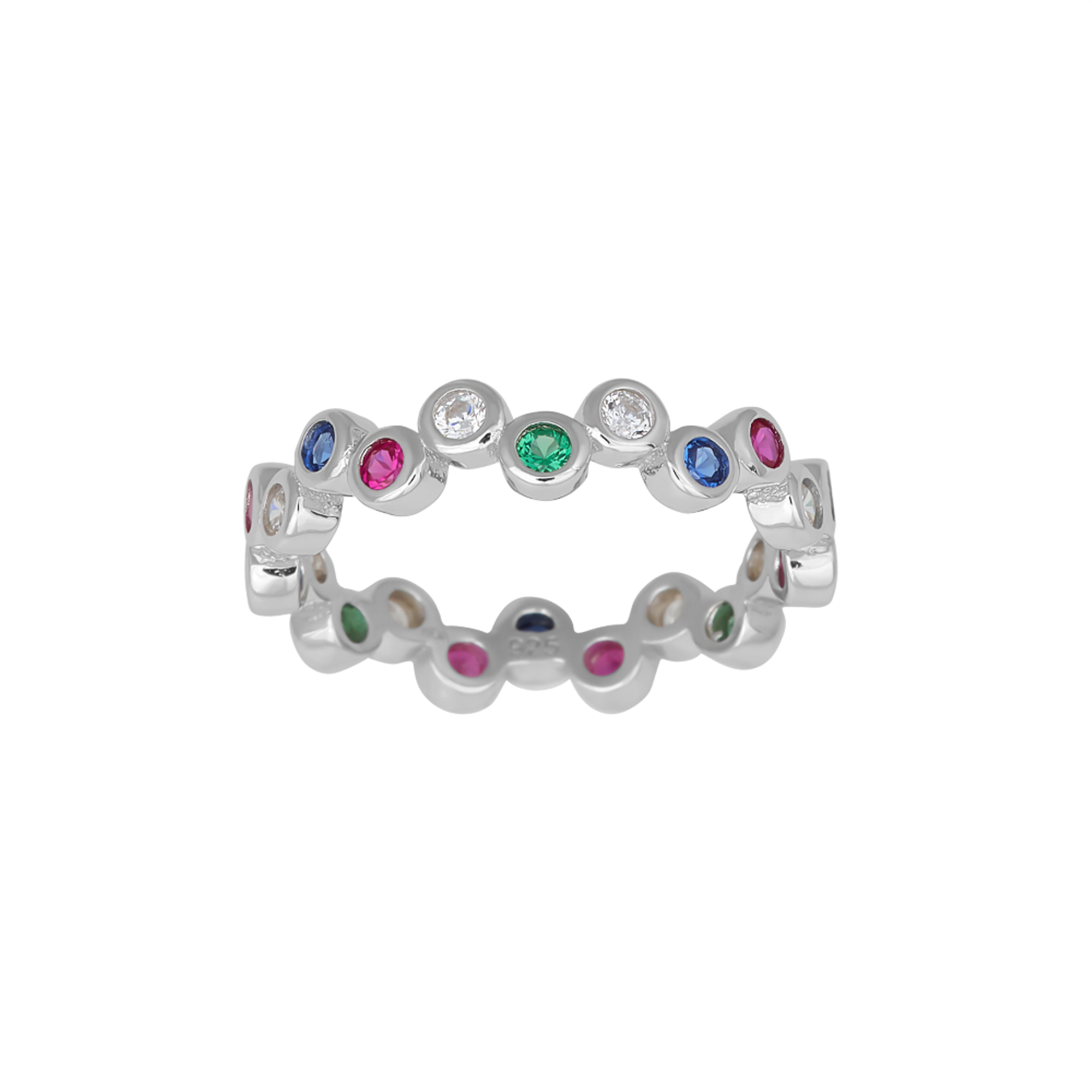 Fortryllende ring fra Joanli Nor med farvede sten, som gør hverdagen lidt mere farverig og magisk. Vores smukke sølvring fra EbruNor vil helt sikkert bringe dig glæde i dagligdagen. De farvede sten er håndsatte kubiske zirkoner monteret i rørfatn