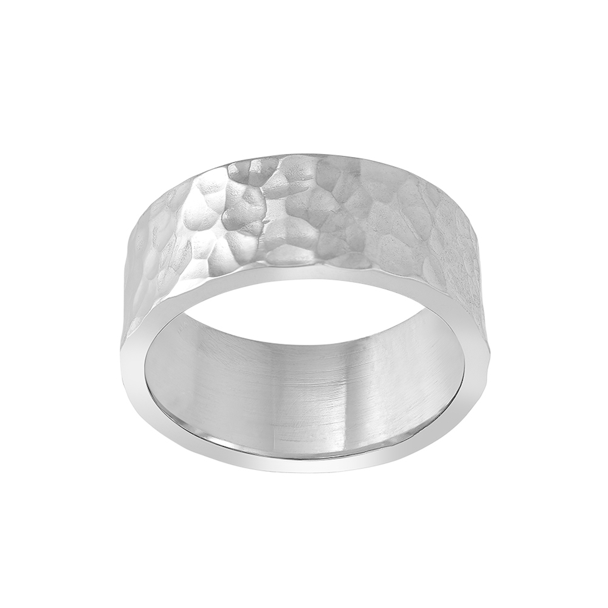 Trendy og anderledes ring med hamret overflade. Denne ring fra vores TWO-SIDED52-serie i sterlingsølver med sit design og størrelse en fed statementring; en ring der har et cool og anderledes look. Ringen måler 8 mm i b