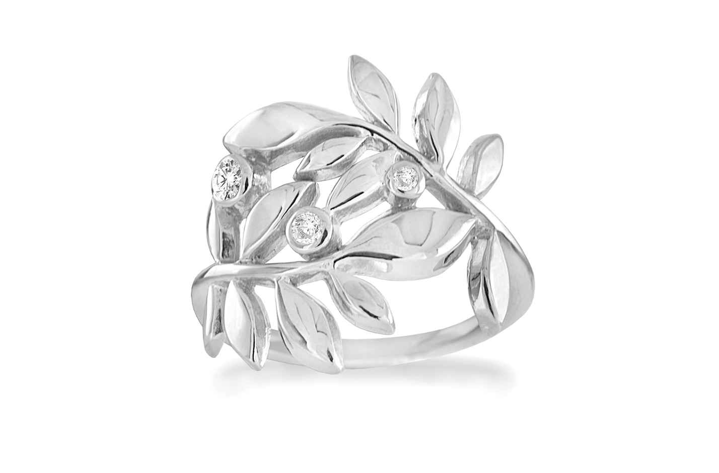 • Naturinspirerad lövdesign med zirkonia-stenar