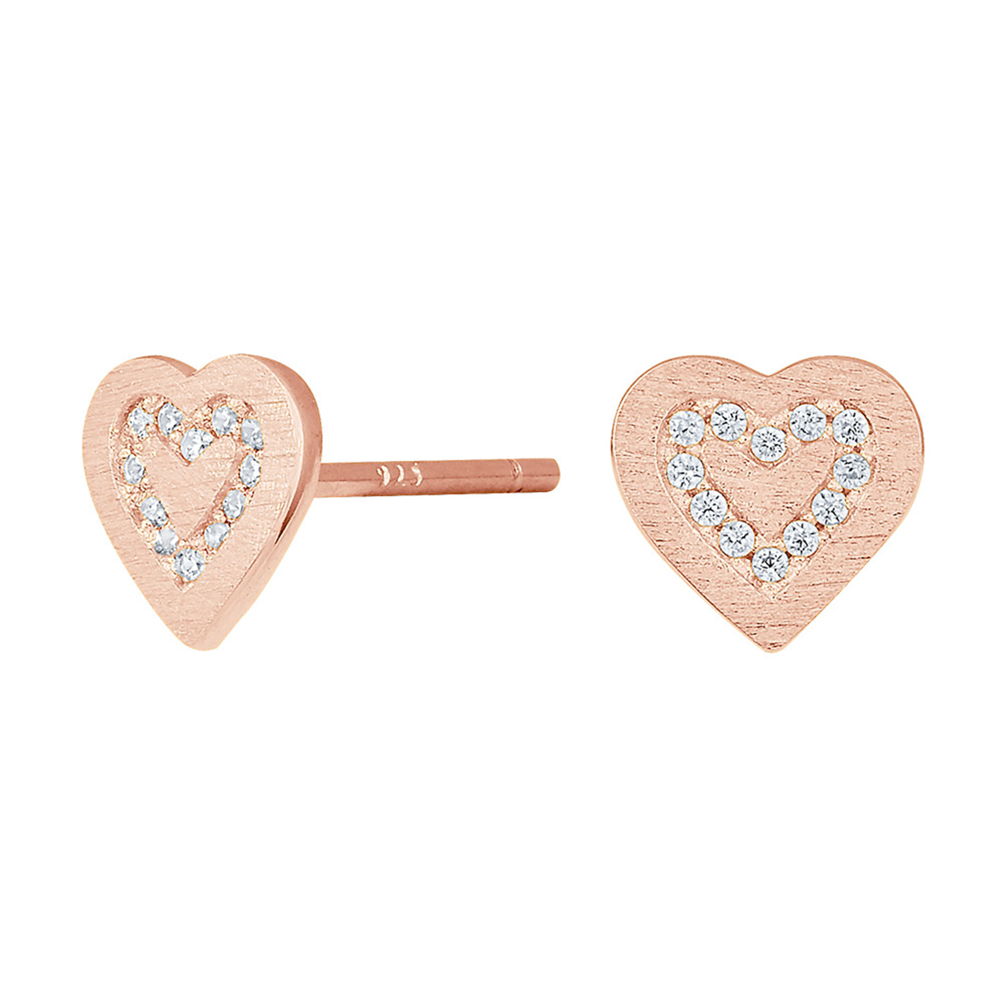 ?Enkelte hjerteøreringe er et must-have i enhver kvindes smykkeskrin. Vores Becky øreringe har en hel særlig udstråling. Det børstede rosaforgyldte sølv spiller smukt op mod de skinnende zirkonia sten, og giv