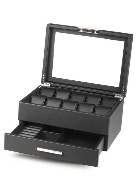 Rothenschild RS-LMWB-10WD Watch And Accessory Box Made Off Imitation Leather [10] Black With Drawer Watchbox