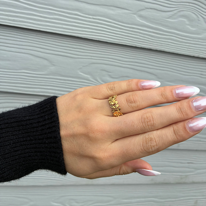 Siersbøl's Beautiful 18 ct gold plated silver ring with fine flowers.