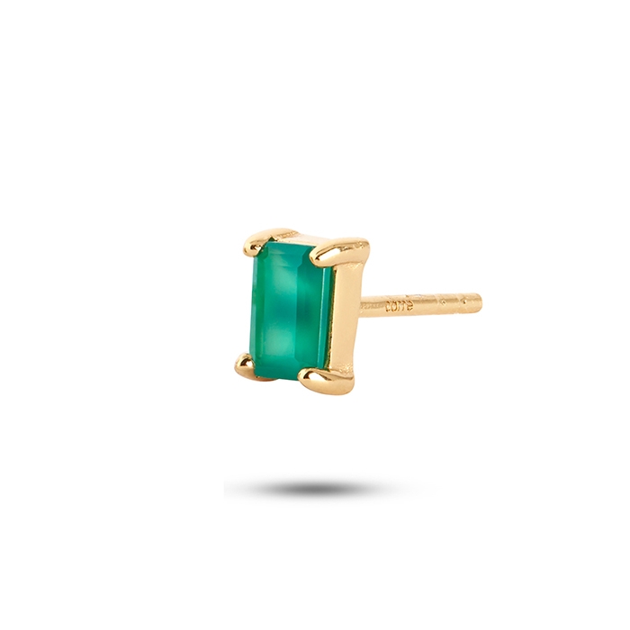 Beautiful earring with rectangular green agate in elegant setting. Measures 5 x 3 mm. Price is per piece, 5 x 3 mm