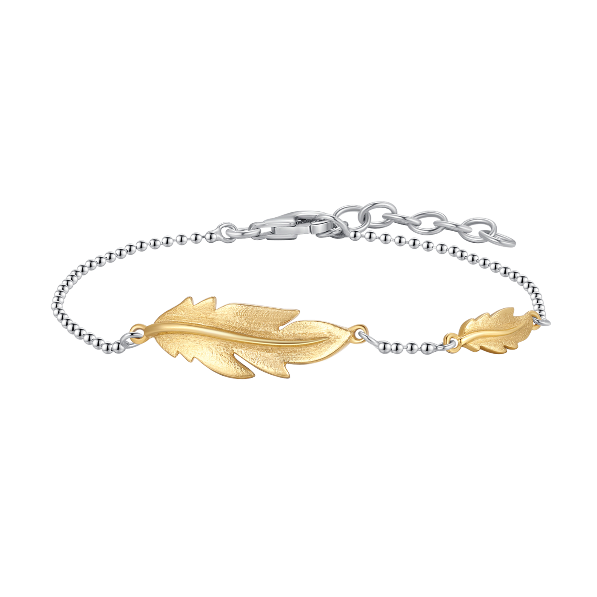 Sølv armbånd rhodineret kuglekæde med 2 forgyldt blade.